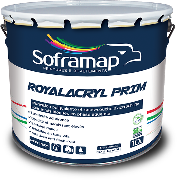Impression polyvalente et primaire d’accrochage pour fonds bloqués en phase aqueuse. Pour l’impression en intérieur et extérieur de tous les supports traditionnels du bâtiment. S’applique notamment sur les supports fermés tels que le PVC, la faïence, l’acier galvanisé, le polycarbonate, les vernis…