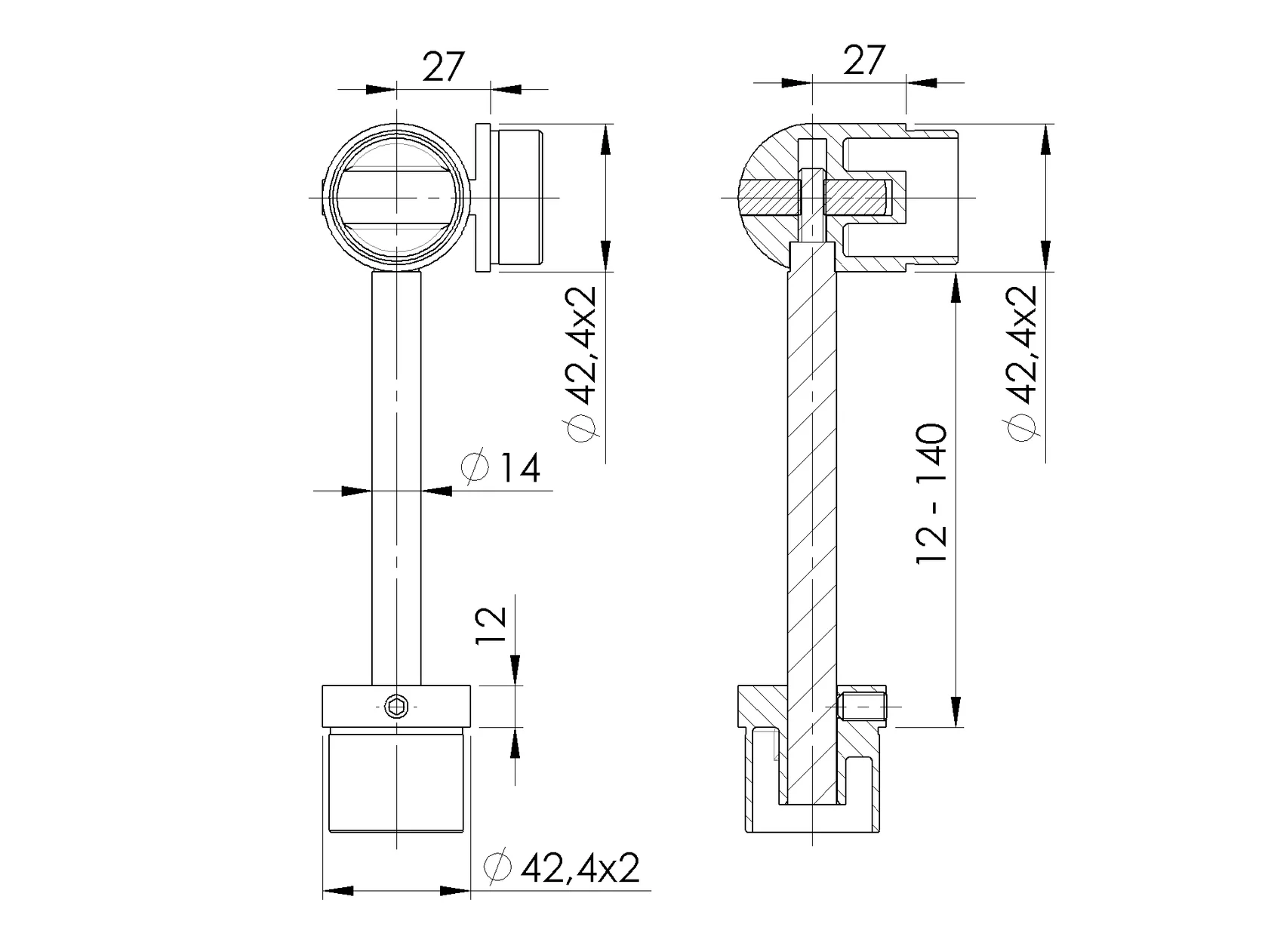 Support de main courante coude angle réglable pour tube ∅42.4mm inox