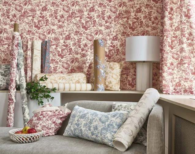 Le Volume 2 des Belles Toiles de Jouy : papiers peints 100 % intissés et tissus coordonnés pour une revisite élégante de ce motif iconique.