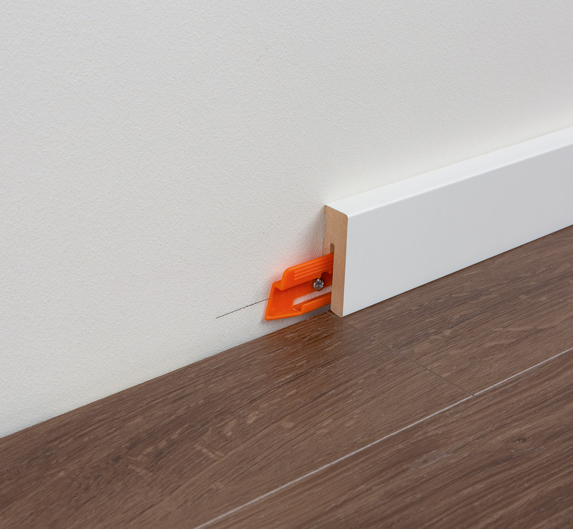 Droite et sobre, la plinthe décorative, avec la qualité exceptionnelle de sa surface, s'intègre parfaitement aux ambiances modernes et raffinées. Cette plinthe constituée d'un cœur MDF de haute qualité ne se déforme pas, peut être utilisée dans les pièces humides et ses arêtes sont entièrement recouvertes. Elle peut être montée facilement grâce aux clips de fixation de couleur orange.