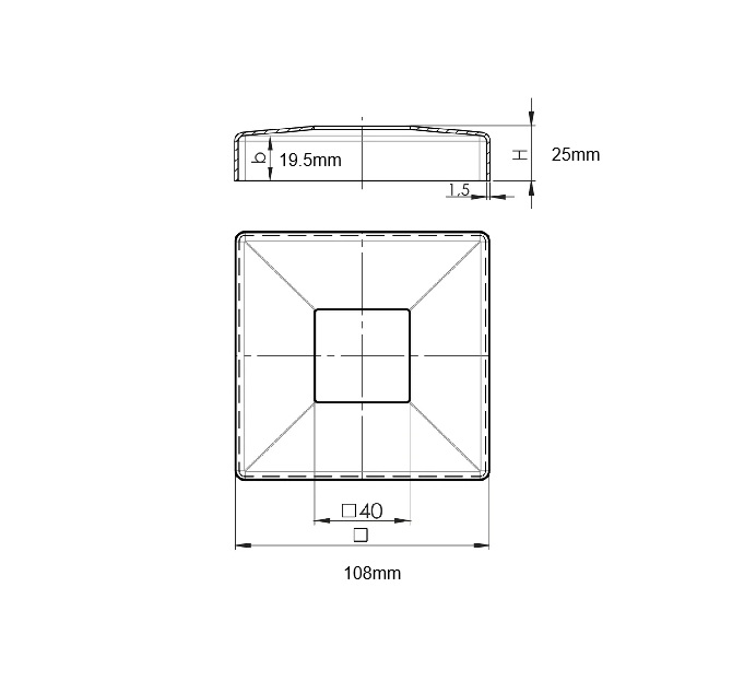 Cache platine inox 304 ou 316 finition satinée 108*108 ht b :25 pour tube 40*40