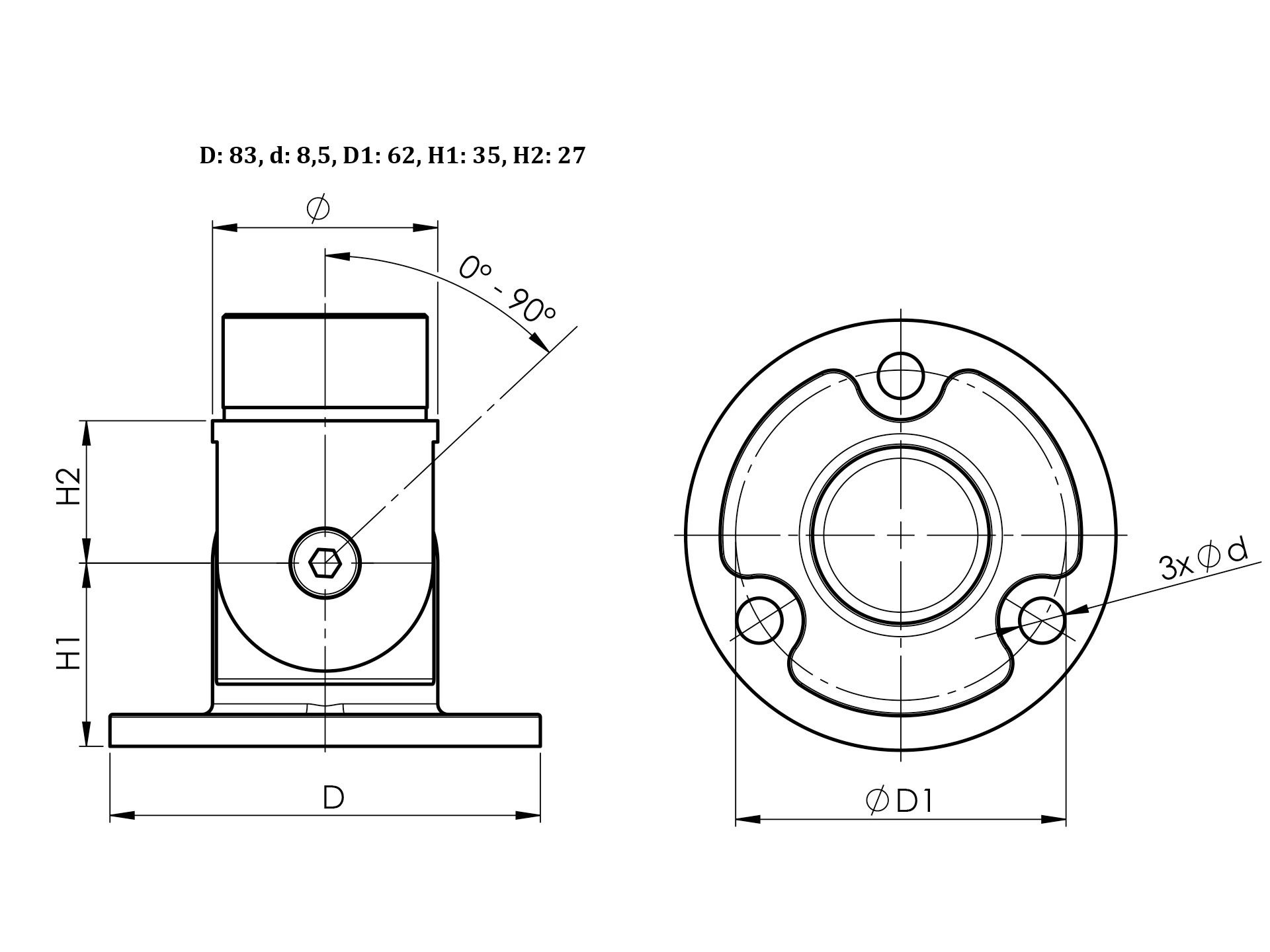 La Fixation murale orientable pour tube assure un soutien et une stabilisation ferme de la main courante . Le support est orientable, ce qui permet d'obtenir l'inclinaison du tube. Pour l'ancrage, la fixation murale e comporte des 3 trous qui assurent la fixation à la surface.